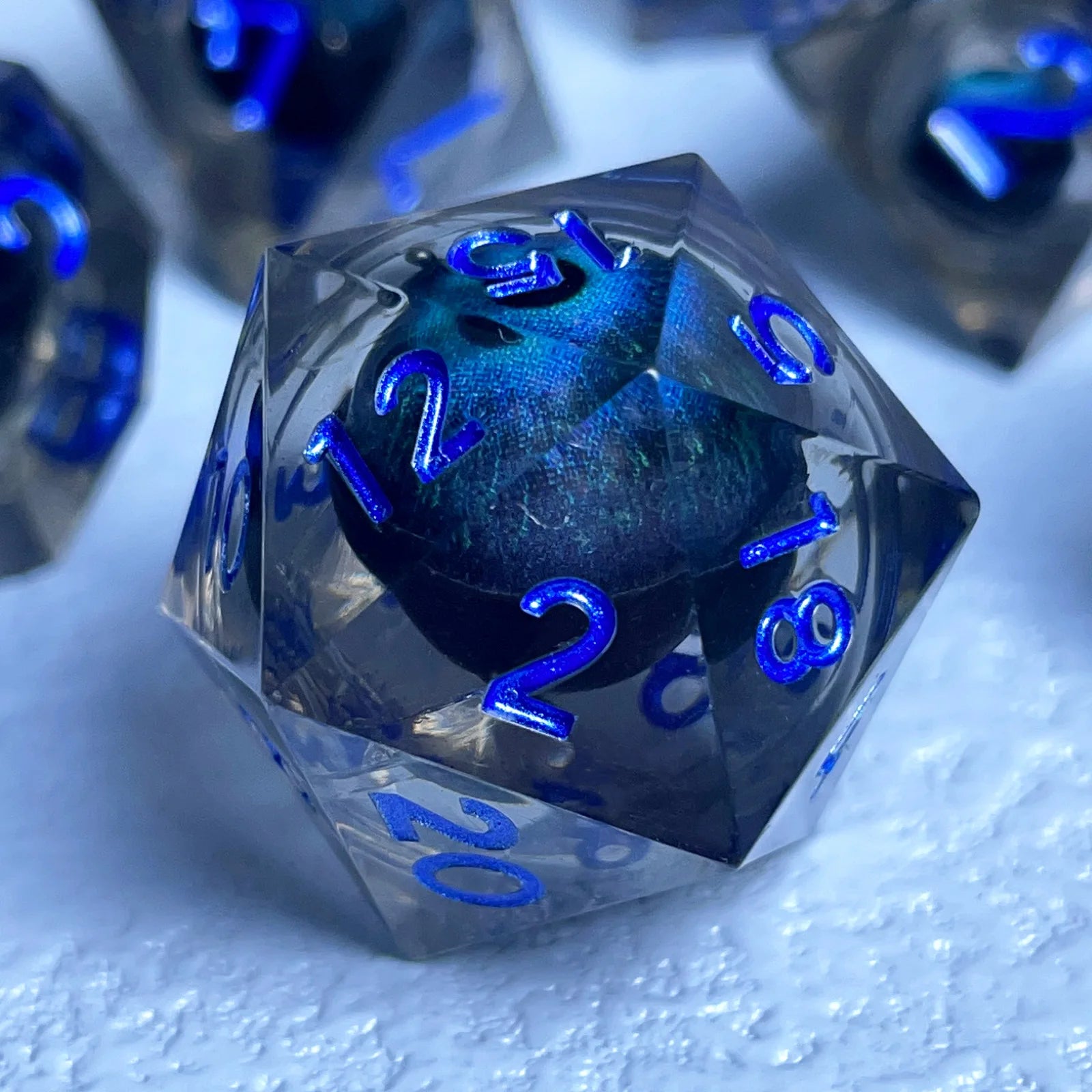 ¡Eleva tus juegos de rol a otro nivel! Este increíble set de dados poliedricos presenta un cautivador núcleo líquido que fluye mágicamente con cada tirada. El diseño de ojo de dragón en su interior crea un efecto visual hipnótico, perfecto para partidas de Dungeons & Dragons, Pathfinder y otros juegos de rol. Fabricados en resina de primera calidad, estos dados no solo son precisos sino también una verdadera obra de arte coleccionable.