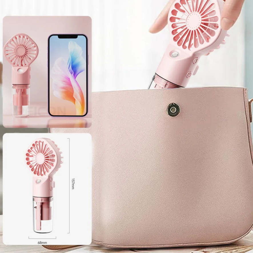 ¡Doble frescor en la palma de tu mano! Este innovador ventilador portátil no solo genera una brisa refrescante, sino que también incorpora un humidificador que emite una fina niebla de agua para hidratar tu piel y el ambiente. Perfecto para combatir el calor en interiores y exteriores, su diseño compacto y recargable lo convierte en el compañero ideal para oficinas, viajes, playas o camping. Disfruta de un alivio instantáneo con su tecnología 2 en 1.